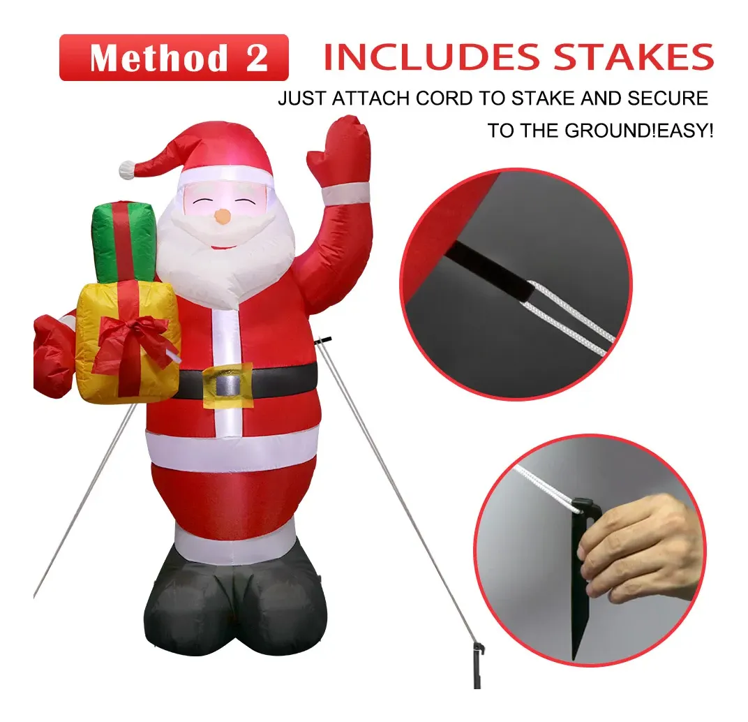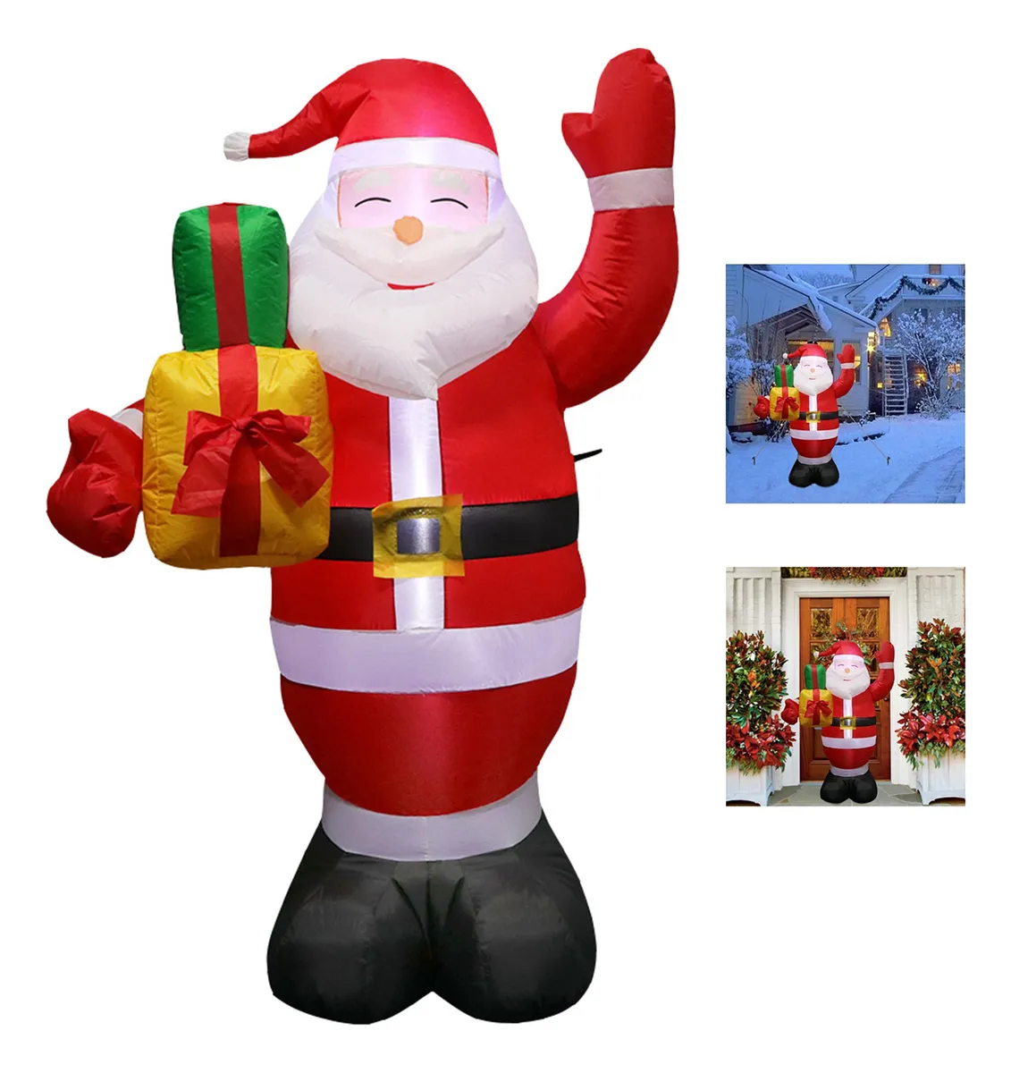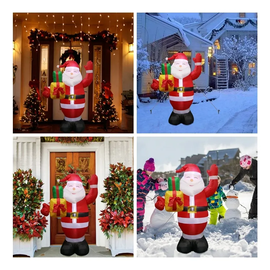 Papá Noel hinchable de 180 cm de altura con luces LED. El Papá Noel inflable con luces LED puede iluminar todo el patio por la noche. ¡Un gran paquete de regalo traerá infinitas sorpresas y alegría a su familia y creará un cálido ambiente navideño! ¡Que la belleza y la alegría de la Navidad permanezcan contigo durante todo el Año Nuevo!