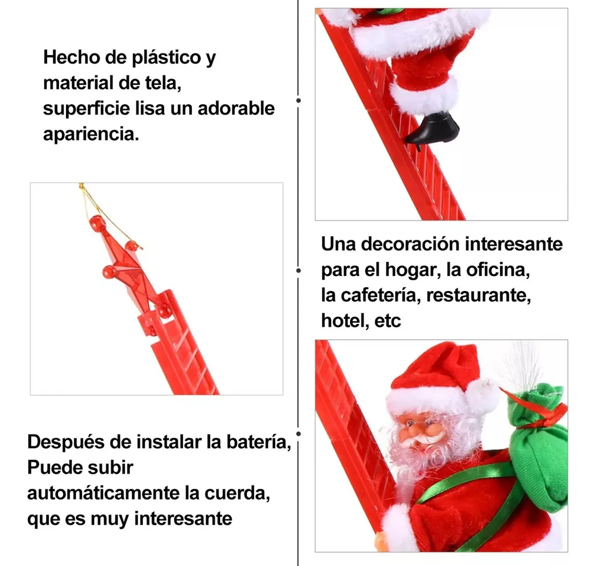 IDEA ÚNICA — El Papá Noel eléctrico animado puede subir y bajar la escalera repetidamente con música, con una expresión alegre y un mini saco a la espalda. El color rojo brillante convierte a Papá Noel en uno de los adornos más atractivos del árbol de Navidad.